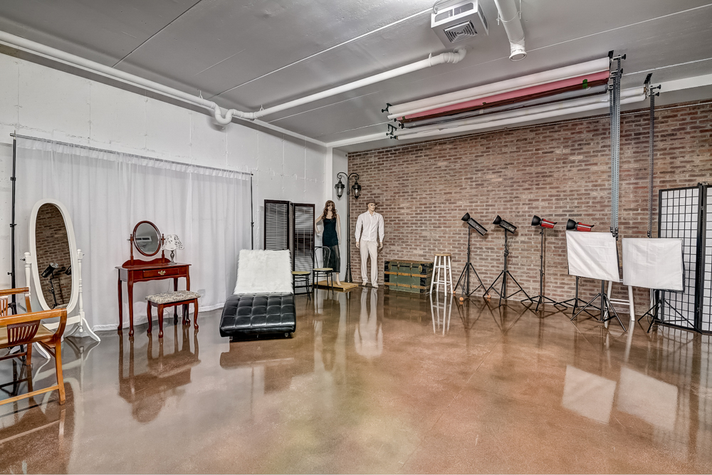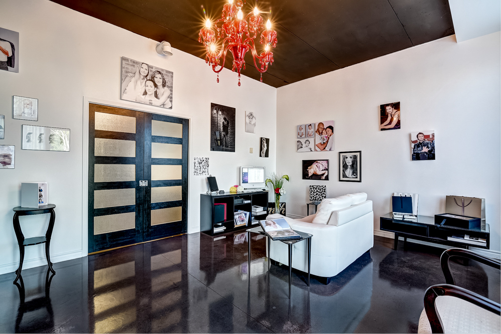 Le studio de 1500 pc est idéal pour vous recevoir dans un environnement fonctionnel, créatif et convivial. Coin-maquillage, coin-cuisine, grande toilette et miroir pour vous changer, fond en brique pour des photos branchées, lounge pour le visionnement des photos en toute tranquillité.